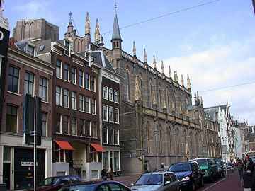 | Op de plek van dit pand, en nog enkele aangrenzende panden is in 1884-1886 naar een ontwerp van architect Petrus Josephus Hubertus Cuypers een nieuwe neogotische Dominicuskerk gebouwd die vanaf het Spui beter is te zien. De toren is nooit afgebouwd. | |