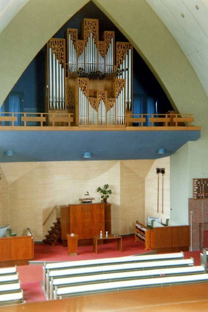 | Holpijp 8, Prestant 4, Gemshoorn 2, Sifflet 1 1/3, Scherp III-IV, Dulciaan 8, Tremulant |