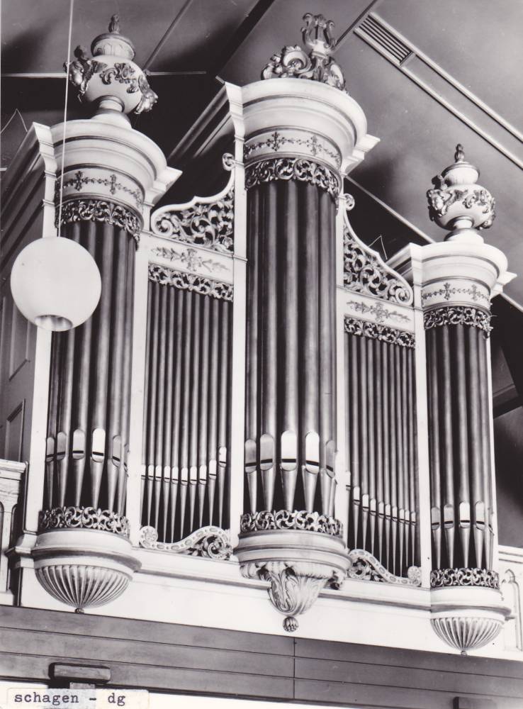 | o/r: | Flentrop Orgelbouw, Zaandam 1987; na partiële restauratie opgebouwd in de voormalige Gereformeerde kerk, bas Bourdon wordt speelbaar gemaakt op een aparte mechanische lade; M II vp: Hw 7-Nw 3-Ped 1 |