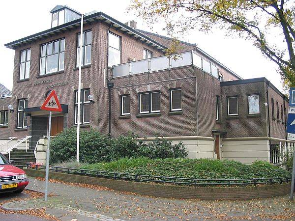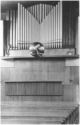 | Het gebouw is in 1948 verbouwd tot Apostolische kerk naar ontwerp van de architecten B.H. Bakker en H. Bunders. In de kelder werden alle pijpen van dit genootschap gemaakt. |